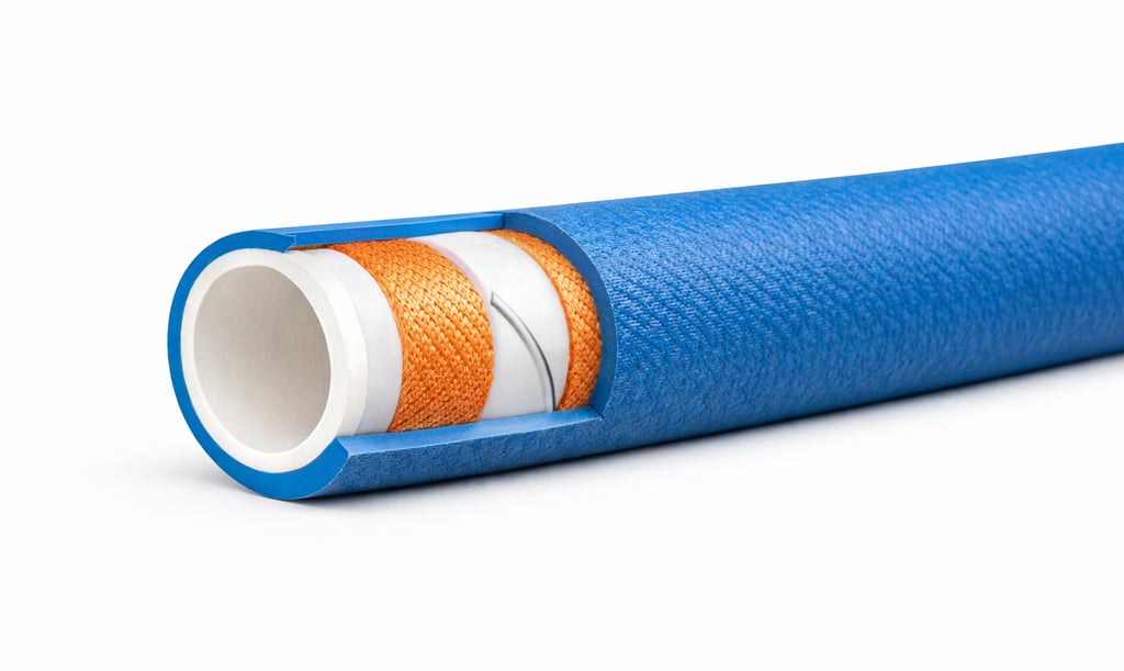 Reinforcement: High tensile synthetic textile reinforcement for strength and pressure stability.