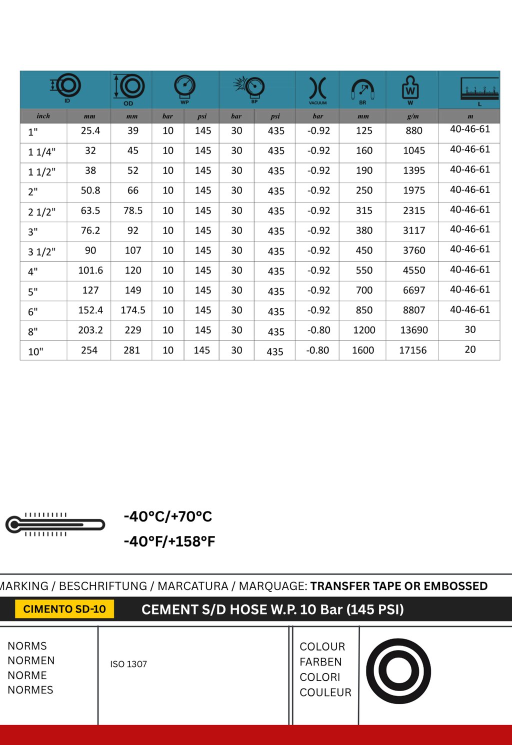 The Cement Suction & Discharge Hose is a heavy-duty industrial hose designed for efficient suction and discharge of dry bulk materials. Constructed with an abrasion-resistant and antistatic natural rubber inner tube, it ensures safe and reliable handling of dry cement, sand, gravel, and similar abrasive materials. The robust reinforcement with steel wire helix provides excellent vacuum resistance, while the pin-pricked outer cover enhances durability in harsh working environments.