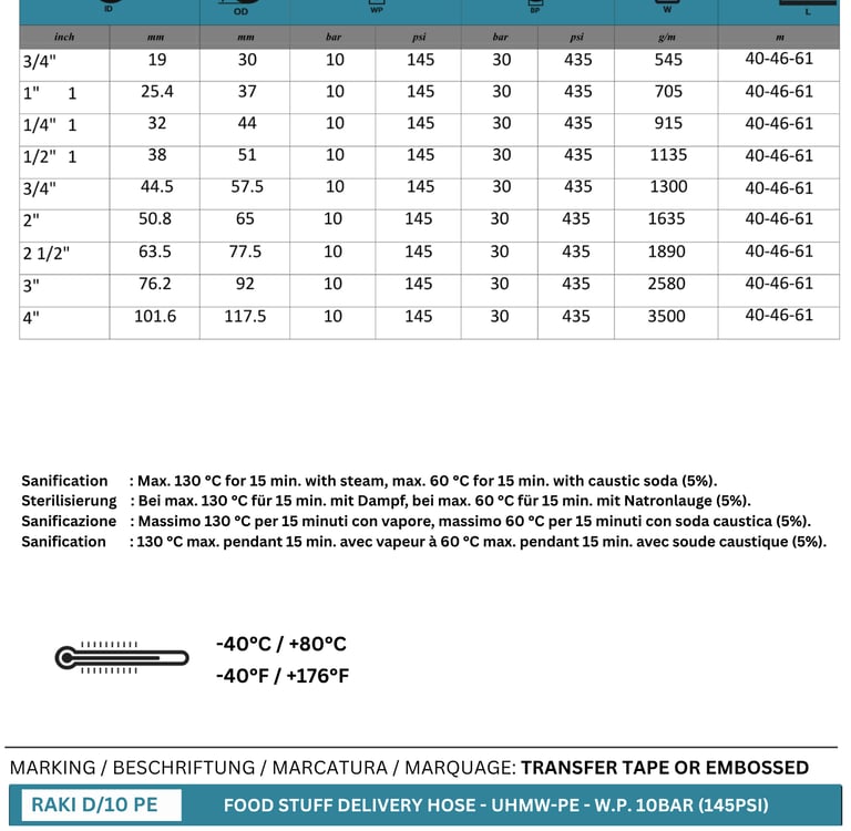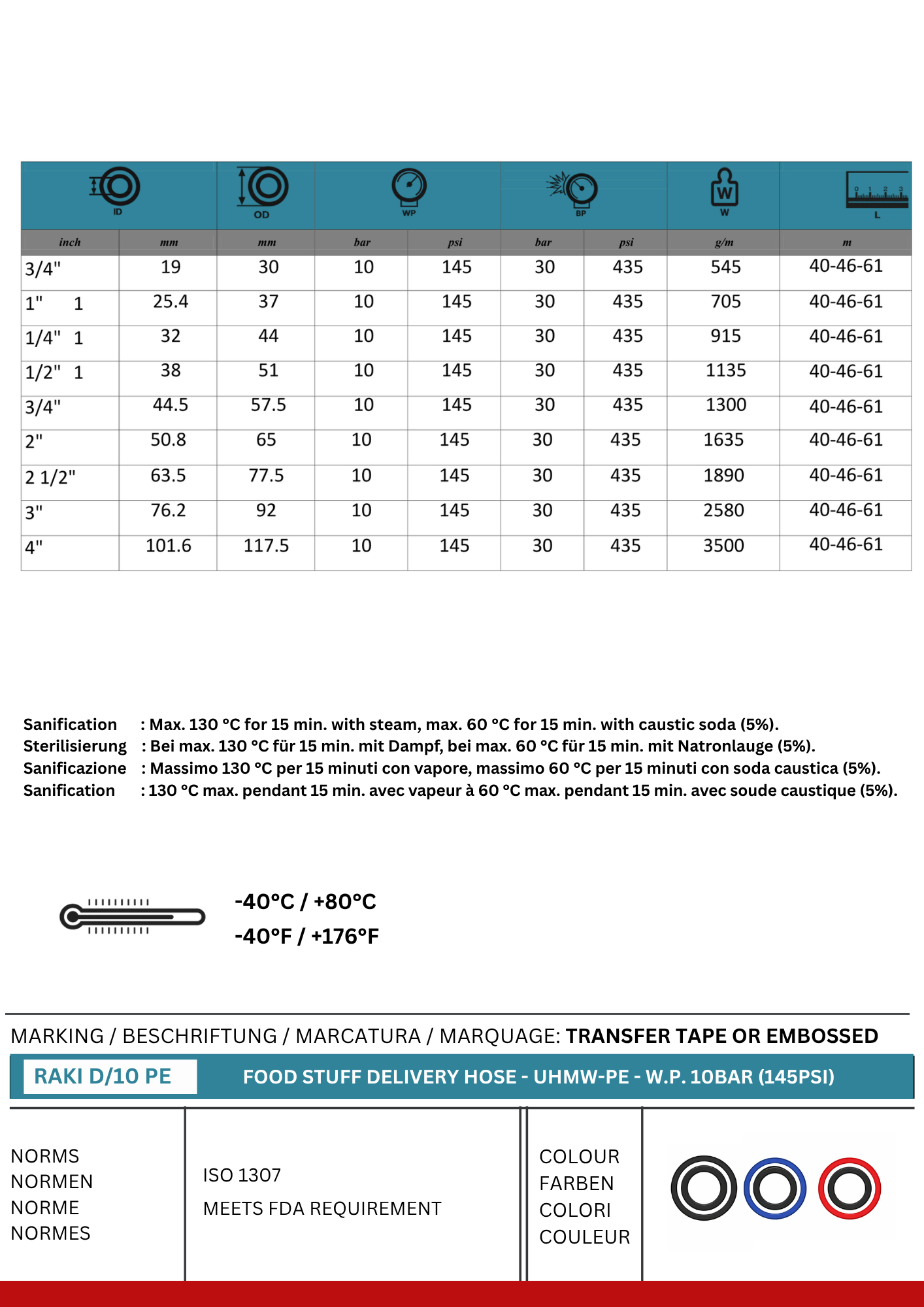 Reinforcement: High tensile synthetic textile with steel wire helix for strength and suction resistance.