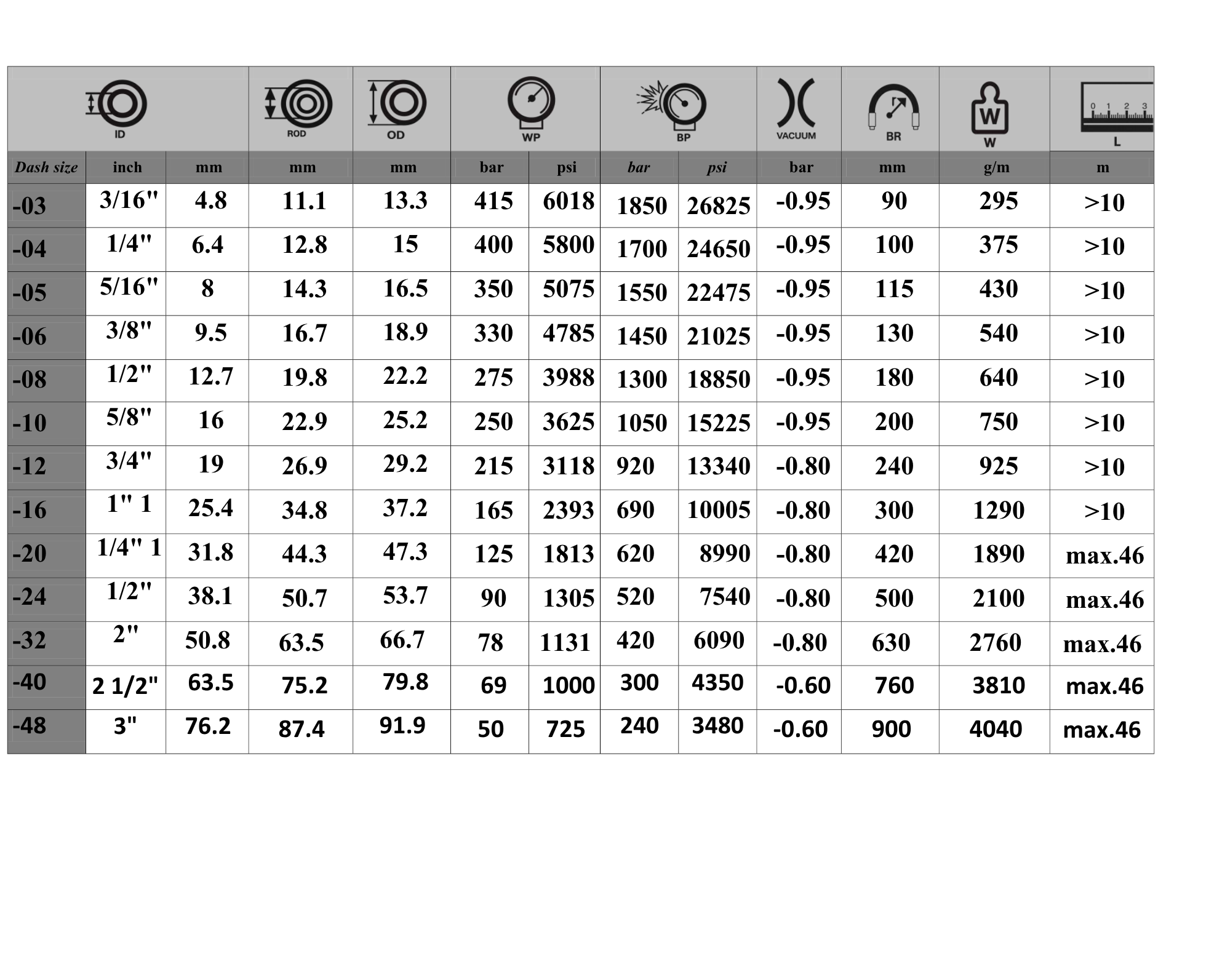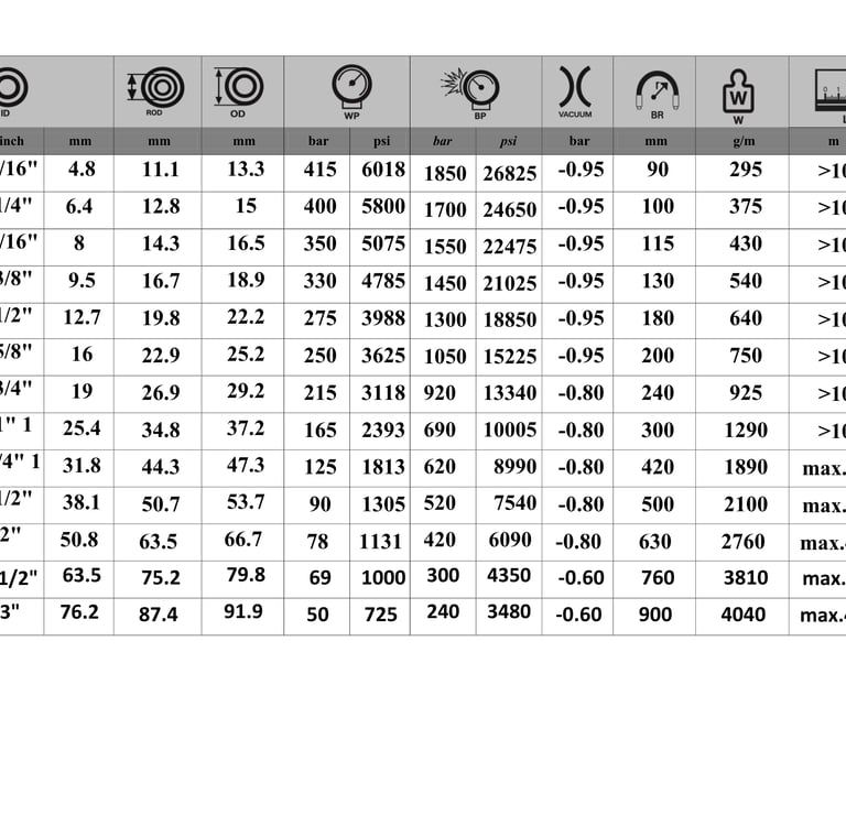 Tube: Mineral, vegetable and hydraulic oil resistant special synthetic rubber.