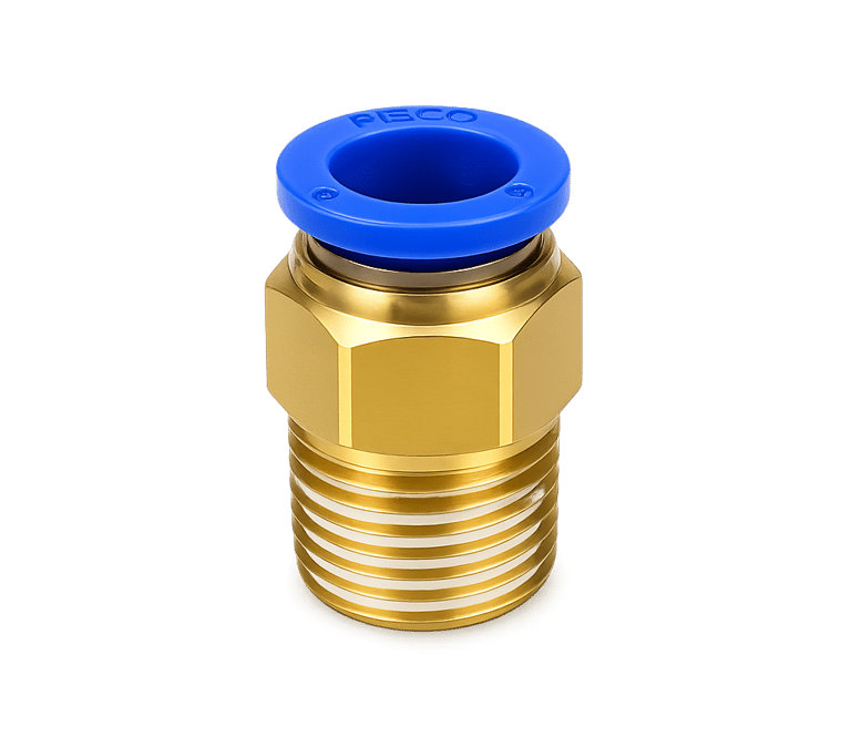 This pneumatic male straight push-to-connect fitting is designed for quick, secure, and leak-free connections in compressed air systems. Made from high-quality brass with a durable polymer push ring, it ensures excellent strength, corrosion resistance, and long service life. The male threaded end allows easy connection to ports, valves, and equipment, while the push-fit design enables fast tube installation without tools. Ideal for industrial automation, pneumatic systems, and air line applications.