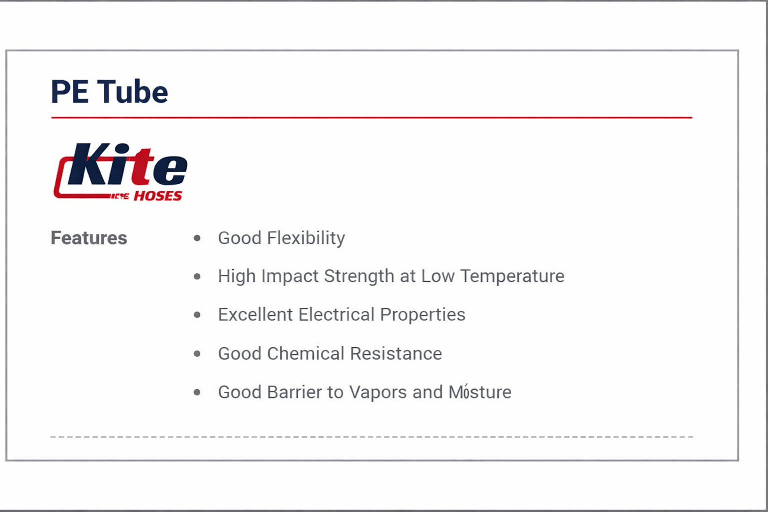 The PE Tube is a versatile and durable tubing solution designed for reliable performance in a wide range of applications. It offers excellent flexibility along with high impact strength, even at low temperatures.