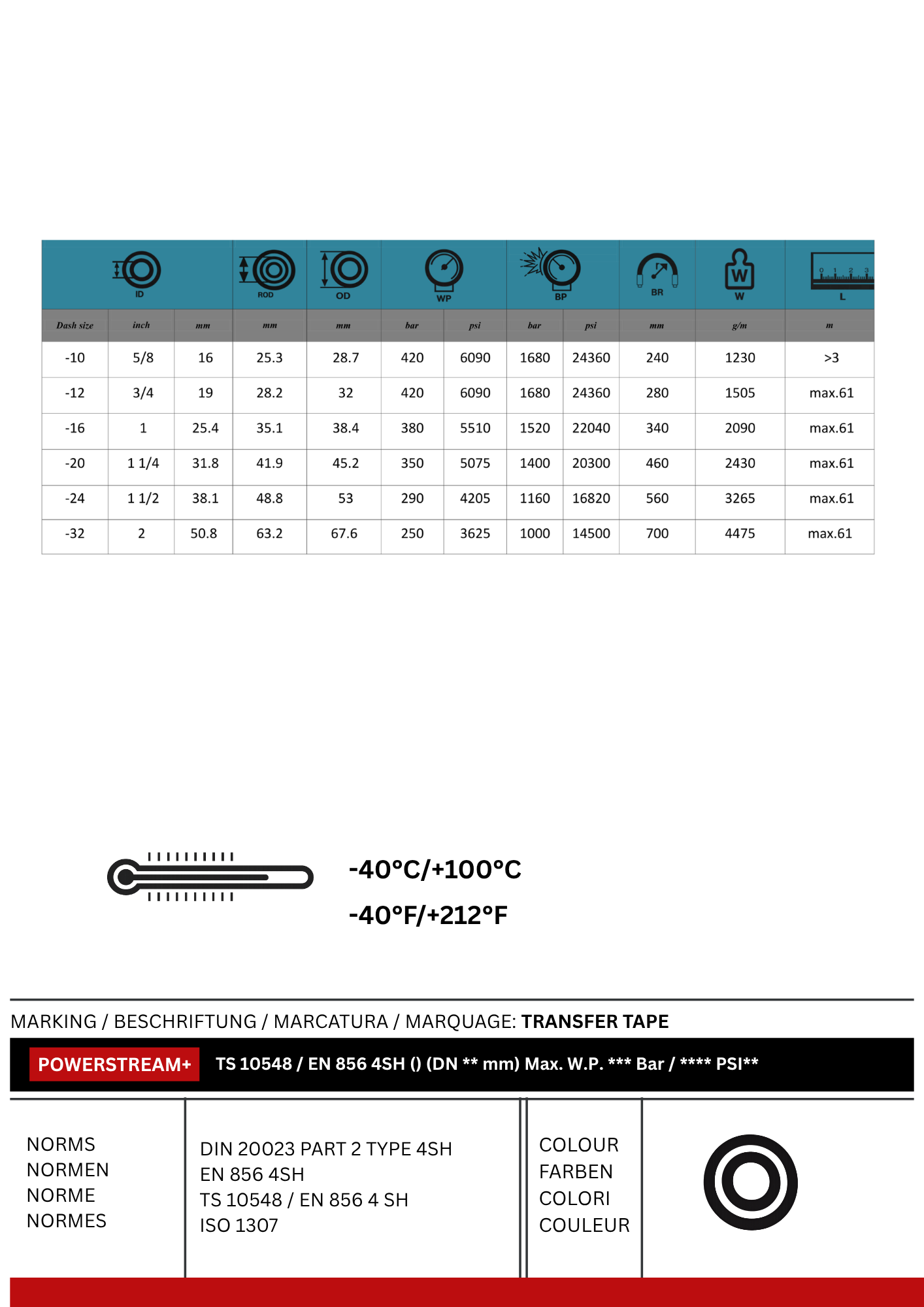 Reinforced with four high tensile steel spirals, the R13 hose delivers exceptional strength, superior pressure handling capability, and outstanding impulse resistance. The outer cover is manufactured using an oil, super high abrasion, and weather-resistant composite bi-layer special compound, providing maximum protection in harsh industrial environments.