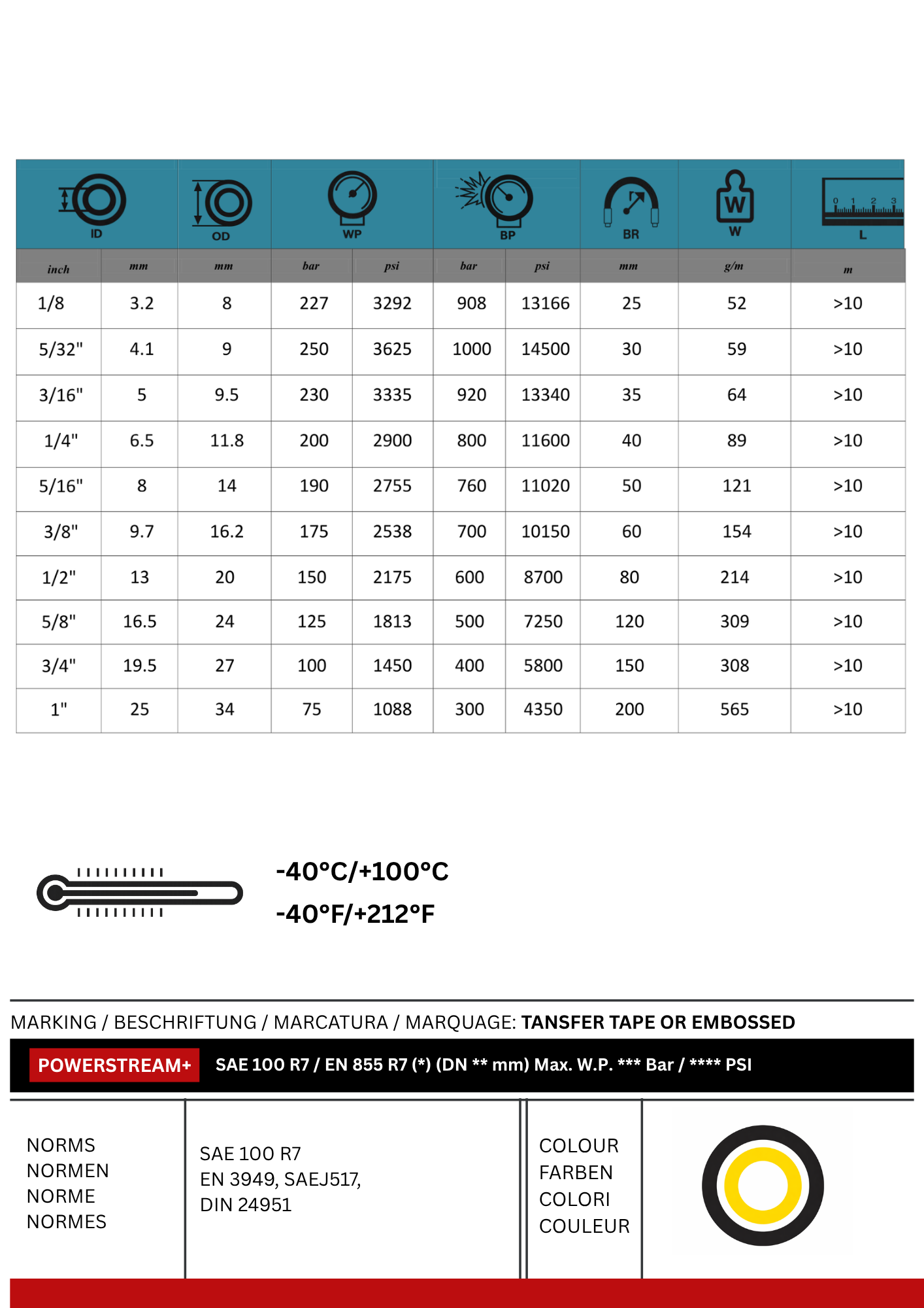 Reinforced with high tensile double polyester fiber braids, the R7 hose provides strong pressure resistance while maintaining lightweight flexibility. The outer cover is manufactured from oil, abrasion, and weather-resistant polyurethane, offering superior durability and long service life in demanding environments.