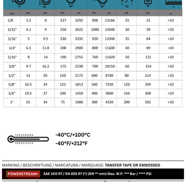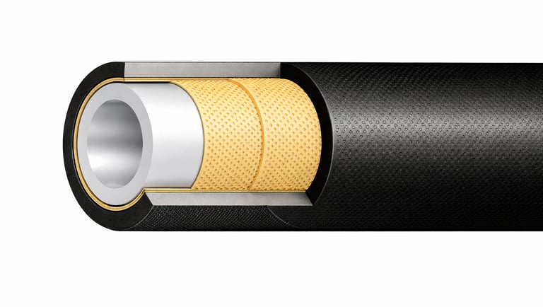 The R7 Hydraulic Hose is a high-performance thermoplastic hose designed for medium to high-pressure hydraulic applications. It features a hydraulic oil, air and water-based fluids resistant polyester inner tube, ensuring excellent compatibility with a wide range of fluids.
