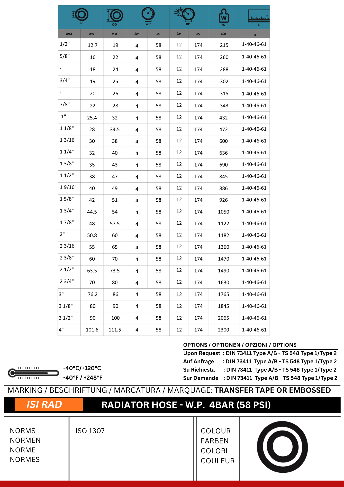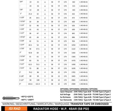 Application: Designed for conveying hot water mixed with anti-freeze liquids in cooling systems, automotive engines, and stationary engines