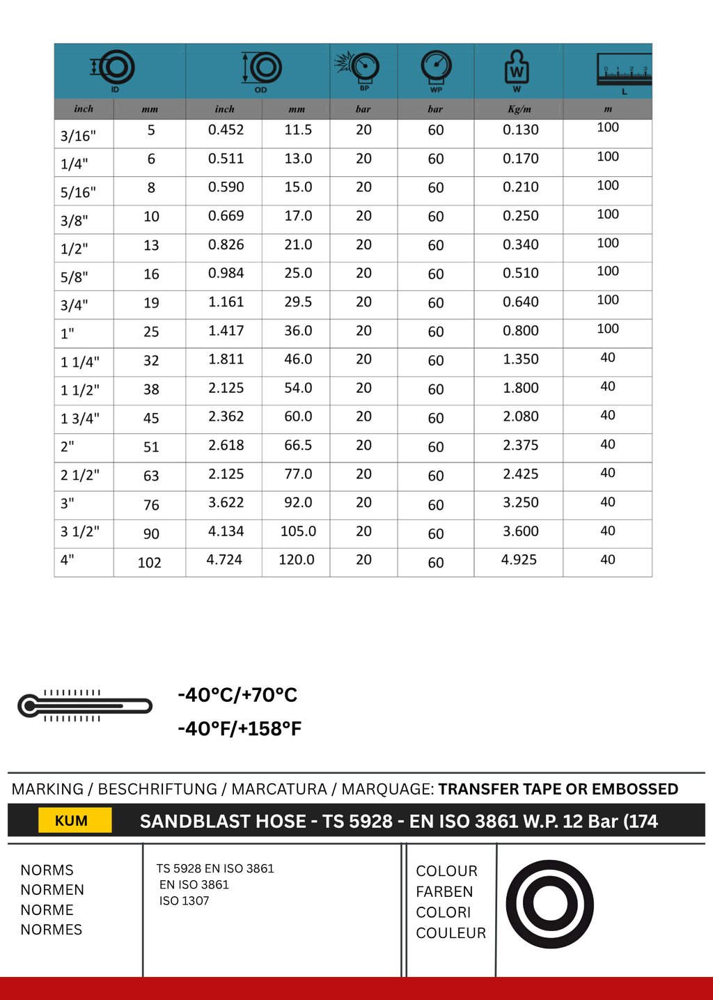 Engineered for durability and safety, the hose minimizes wear, reduces static buildup, and delivers consistent performance during high-impact blasting operations.