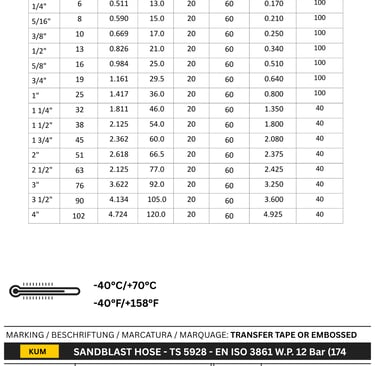 The Sand Blast Hose – 12 Bar is a heavy-duty industrial hose specially designed for abrasive blasting applications. Manufactured with a highly abrasion-resistant and antistatic rubber tube, this hose ensures safe and efficient transfer of sand, steel grit, and other abrasive media. Its robust construction allows reliable performance in demanding environments such as metal fabrication, shipyards, construction sites, and surface preparation industries.