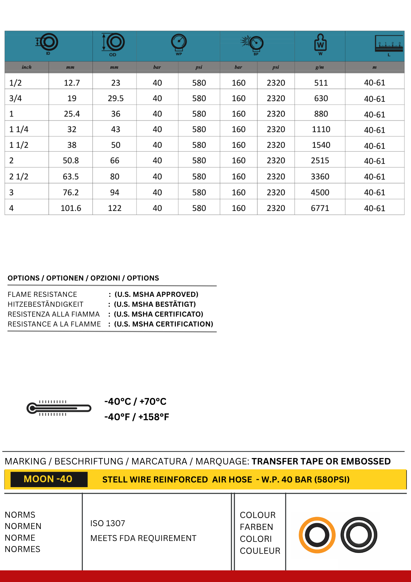 Reinforcement: High tensile steel wire for superior strength and high-pressure performance.